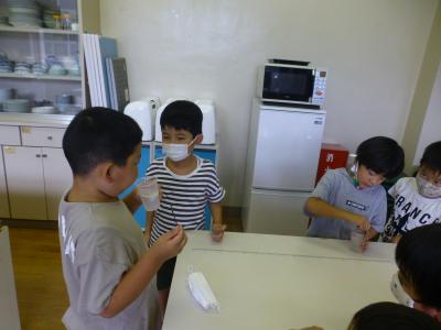 実は、苦手だと感じた子もいたのですが、「1年生に飲ませてあげたい」という2年生の優しい気持ちに触れ、喜びいっぱいの1年生でした。
