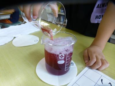 だれかが、「この2つを混ぜたらどうなるの?」と言いだし、早速やってみることに!