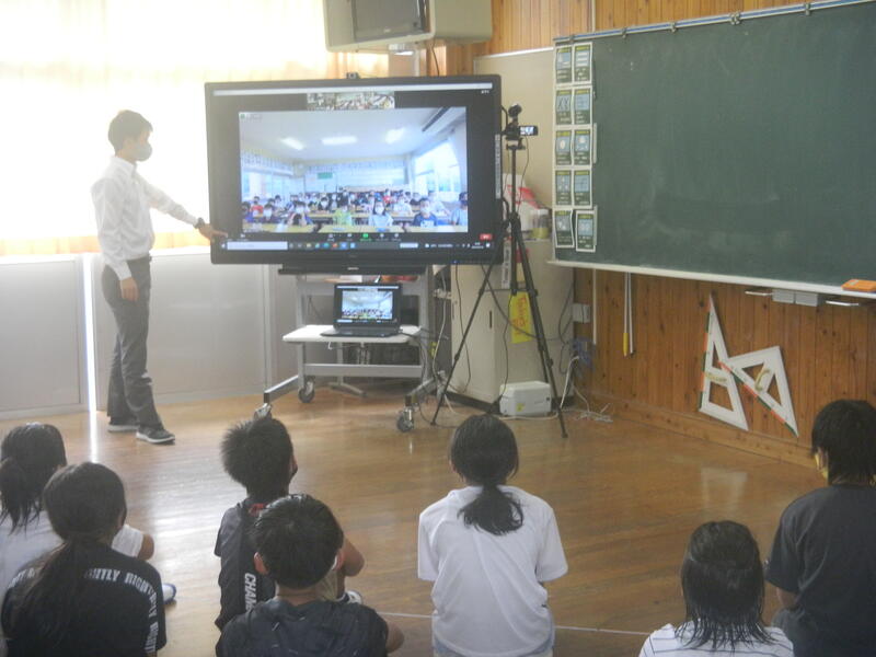 今回は、金剛小、山田小とオンラインでお互いの学校紹介を行いました。