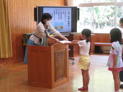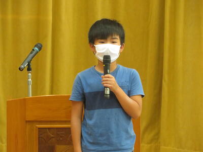 終業式では、低・中・高学年の代表児童が1学期がんばったことや夏休みの抱負を発表しました。