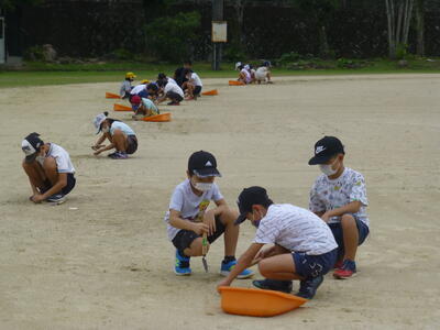 5年生は理科で「流れる水のはたらき」を学習しています。学んだことを確認するため,先日万江川に観察にいきました。川の内側と外側では流れの速さが違うことや、河原の石の大きさや形がどうなっているかを確かめました。観察の途中、イシガメの子どもを見つけて大喜びの子どもたちでした。
