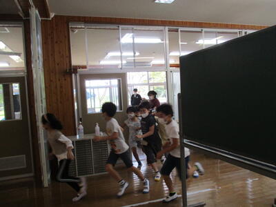不審者が侵入した学級や侵入者が近くまで来た学級では、侵入者の大きな声なども聞こえてきて、とてもドキドキしながら緊張感のある訓練となりました。