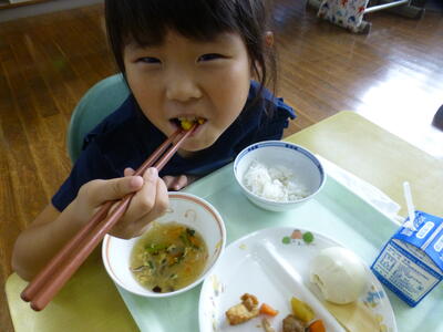 万江小の給食は、お米もおいしいし、いろいろな味の熱々の料理が食欲をそそります。