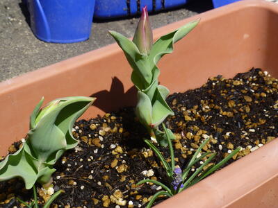 「卒業式に咲くといいな」と育てているチューリップは、現在こんな状態です。