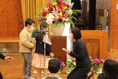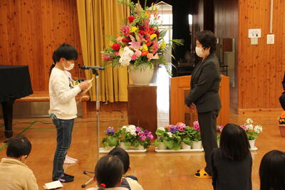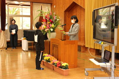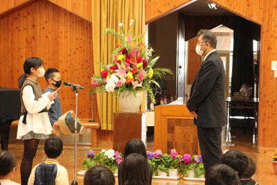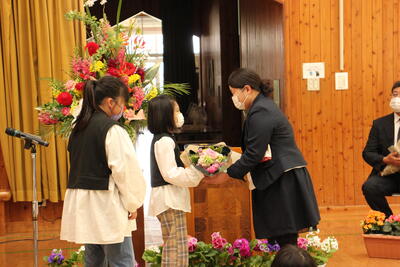子どもたちからメッセージと花束をお渡しし、楽しかった思い出や感謝の気持ちを伝えました。