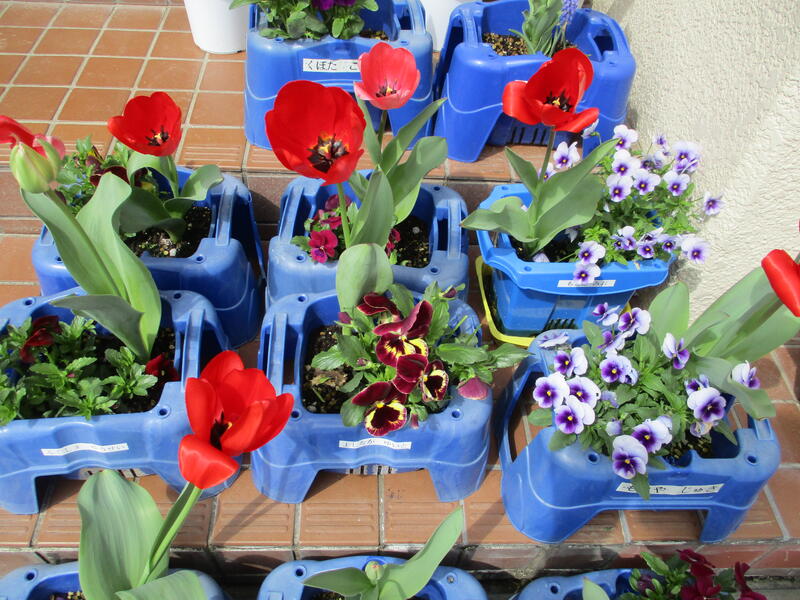 子どもたちや先生たちが「種」から愛情いっぱいに育てた花。