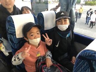 今日から修学旅行です。山田小の6年生といっしょに長崎、佐賀に行ってきます。お天気もよさそうで、万江小の4人は元気に出発しました。