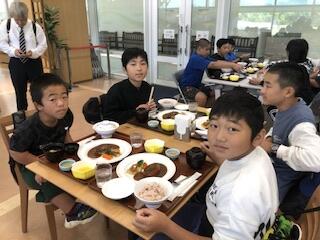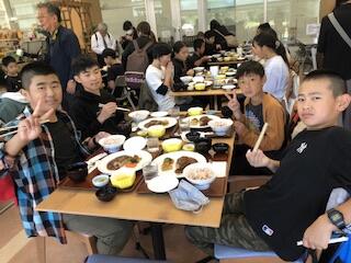 お昼ご飯はハンバーグです。朝早かったので、みんなお腹ぺこぺこです。