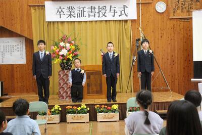 21日は,万江小のリーダーとして学校を支えてくれた6年生4人の卒業式でした。本年度は在校生全員が参列し,みんなで門出をお祝いすることができました。とても立派で感動的な卒業式でした。中学校では,またたくさんの出会いがあり,たくさんのよい経験を積んで,大人への階段を一歩一歩上がっていくことでしょう。4人の卒業生のこれからのさらなる成長と活躍を心よりお祈りしております。