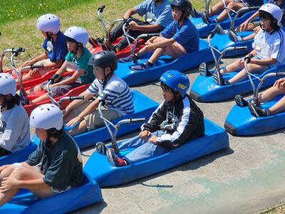 昼食後、退所式をして芦北海浜総合公園に場所を変え、ローラーリュージュ体験をします。