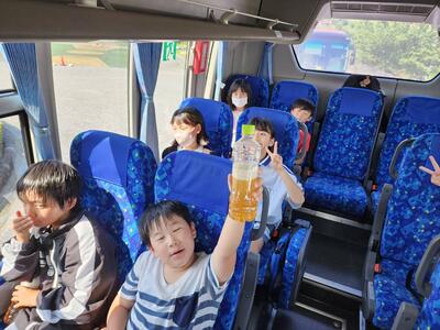 ローラーリュージュ体験も終わり、子どもたちは、7人全員笑顔でバスに乗り込みました。
