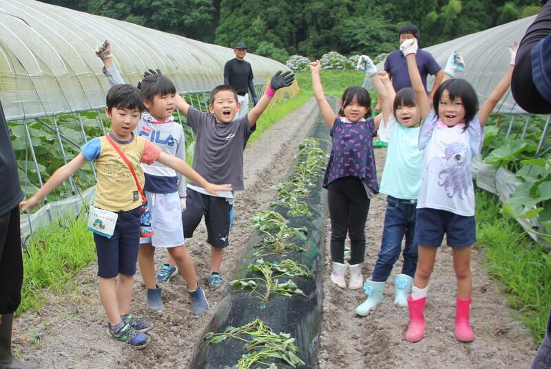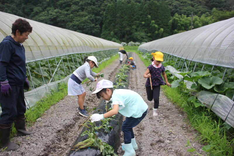 1・2年生で,生活科の時間にさつまいものつる植えをしました。つるや畑の準備は,JA青壮年部のご協力をいただきました。つる植えが初めてという子もいましたが,JAの立山さんや万江の里の豊永さんご夫妻にお手伝いいただきながら,150本のつるを植えることができました。秋の収穫を楽しみにしながら,草取りやつる返しなどのお世話をがんばります。