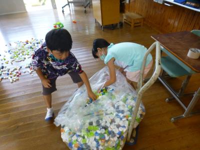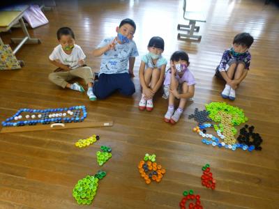 初めは、「ペットボトルキャップでは、何も作れない」と言っていた子どもたち。