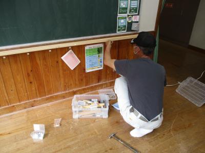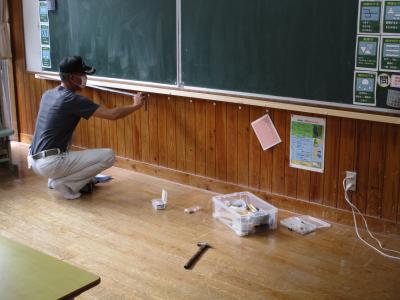 と、あれこれ考えていたら、そのことを聞かれた卒業生のおじいちゃんが、すぐに学校に来られて、あっという間に手作りの「黒板の溝」を作ってくださいました。