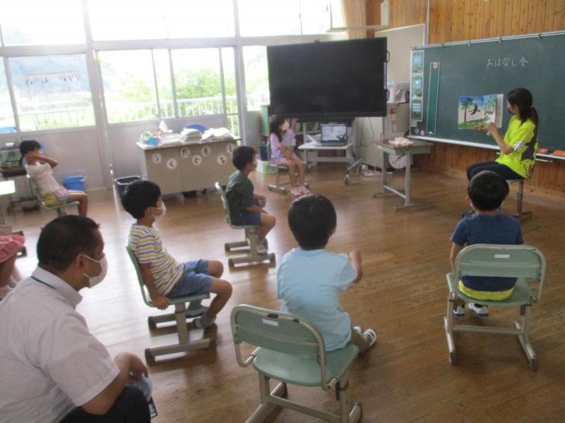 今日は朝の万江っ子タイムの時間に、おひさまの会のお話会がありました。