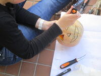 今日ケイト先生が学校でジャックオーランタンを作りました。