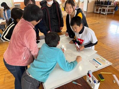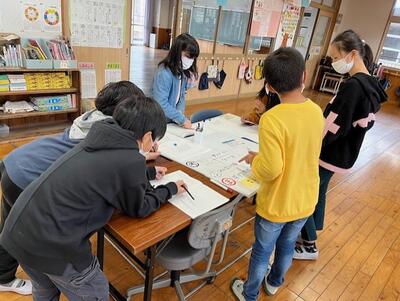 【板書を基に細かくチェックをする低学年部】