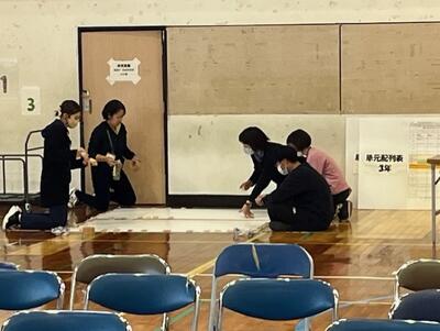 本日午後から、教室や受付場所、控え室、そして体育館の準備が進められました。