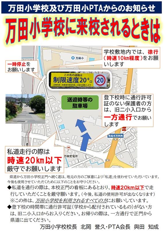 ・駐車券を持っている方は、万田小学校正門からお入りください。