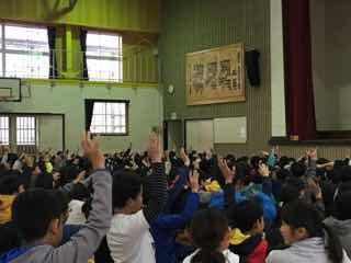 今年はインフルエンザの感染拡大にならないよう教室での集会となりました。
