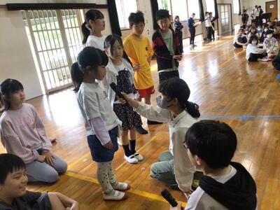 この歓迎集会は、児童会リーダーの子供たちを中心に進めていきました。集会の間は想定外のことがたくさんおきますが、臨機応変に対応していく姿に成長を感じました。