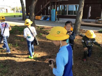 1年生が湿地センターへ行きました。今回は、荒尾干潟の生き物について学んだり、湿地センターの周りにある松ぼっくりなどを見つけて秋を探したりしました。とても楽しかったようです。