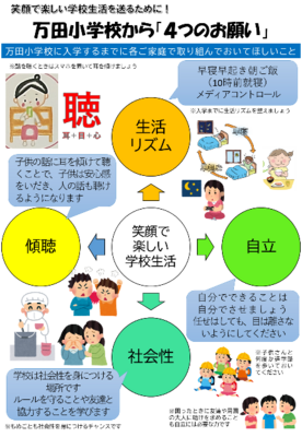 本日、来年度入学予定の子供たちと保護者を対象とした「就学時健診」が行われましたが、昨年と同様に4つのお願いをしました。