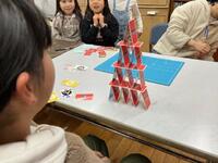 最近、昼休みの校長室では6年生の女子がトランプタワーにはまっています。トランプ(カード)を向かい合わせて組み上げていくのですが、少しの振動ですぐに倒壊してしまいます。集中力と微妙なバランス感覚が問われるんですよね。せっかく組んでも、隣のカードがバランスを崩すと一気に…。そんな中、今日はついに4段のタワーに成功しました!途中挫けそうでしたが、組み上げるまでの集中力と、その真剣な眼差しに感動しました!