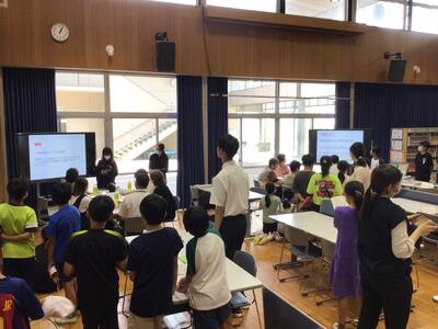 各学年の学校生活の様子を知り、「〇〇知ってる!」「おー!すごい!」という声があがっていました。