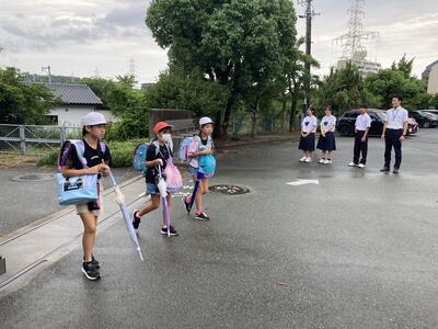 いつもより早い時間の登校でしたが、出発前から笑顔いっぱいの子供たち。楽しみにしている様子が伝わりました。