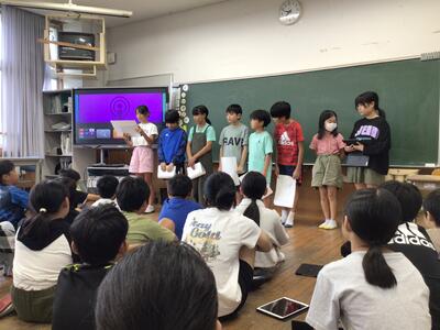 今年度、最後の代表委員会が行われました。今回の代表委員会では、5年生の新委員長から活動報告をしました。6年生が見守る中、立派に発表することができました。
