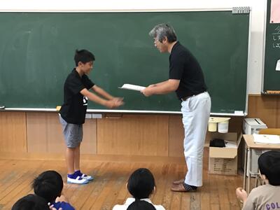 そして、終業式が終わると、いよいよ「あゆみ」が担任の先生から渡されます。万田小学校の子供たちみんな前期をがんばることができました!後期での活躍を期待しています。