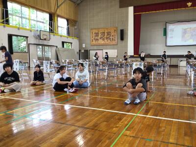避難訓練では、校長先生から地震の「縦揺れ」と「横揺れ」の違いについて体を使って具体的に教えてもらいました。(6年生の子供たちが手伝っていました!)子供たちは興味深く聞いていました。