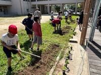 3年生の花壇をワシャワシャと耕してくれました。耕運機海陽号に感謝!