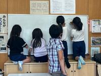 毎日、昼休みになると子供たちが校長室にやってきます。校長室には、大きなホワイトボードがあり、低学年の子供たちの人気スポットになっています。3~4名でやってきて、思い思いの絵をかくのが楽しみのようです。