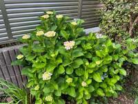 元々は、母が鉢植えで買ってきた苗でした。その後は、庭でほったらかしにしていたため、枯れかかっていました。それを庭に植え替えて、水の管理をしていたら、数年でこんなに大きくなりました。ところが、一昨年に、伸びた枝をばっさばっさ落としたため、昨年はほとんど咲かずに…。今年はたくさん咲きそうでホッとしました。でも、本当は花ではなくガクなんですけどね…。