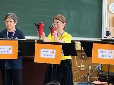 今年も幼稚園の先生方が実習に来られました。今日は、みやじま幼稚園と四ツ山幼稚園からお一人ずつ1年生のクラスに入られました。