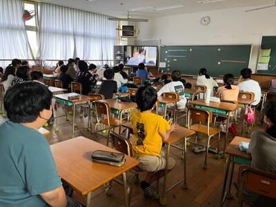3時間目は高学年(4~6年生)が人権集会を行いました。4年生は教室から、5年生は北校舎2階ホールから、そして6年生は体育館からそれぞれZoom配信をしました。