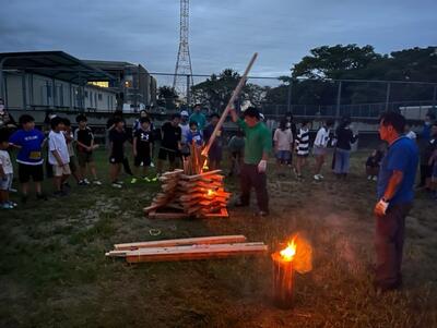 点火式を済ませ、みるみるうちに炎が上がっていく様子を眺める子供たち…。最後は、再び施設職員の方からも一言いただき、無事に終了することができました。