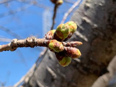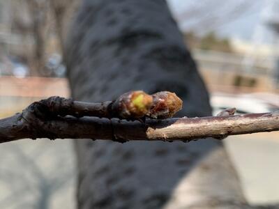 学校の桜の木を早速観察してみると、明らかに変化が見られました。前回は、茶色くギュッと引き締まった感じだったのが、薄緑色が見えて、そっと触ってみるとやわらかくなっていたのです。本当ならば「休眠打破」といって、一度寒さが戻り、再び暖かくなると、一気に開花に向かうのですが…。