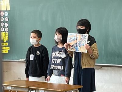 昨日は6年2組から5年2組の子供たちに対してガイドが行われましたが、今日は6年1組から5年1組の子供たちに対するガイドでした。