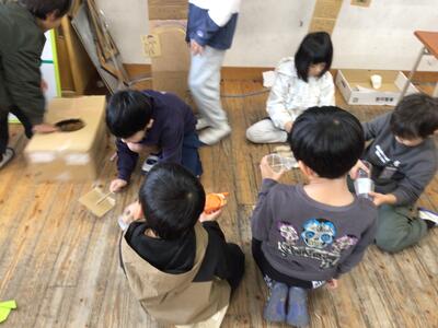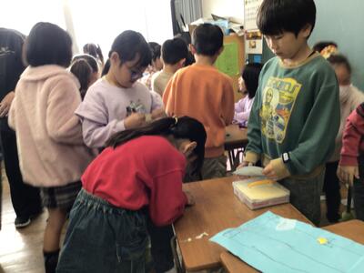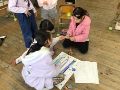 1年生が生活科の時間に作った「秋のおもちゃ」で、昼休みに上級生を招待して「秋のおもちゃランド」を開きました。