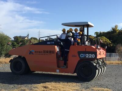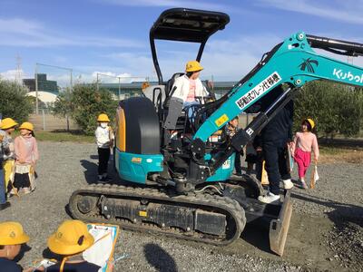 加来建設さんにご協力いただき、いろいろな「はたらく車」を見たり、乗車したりしました。