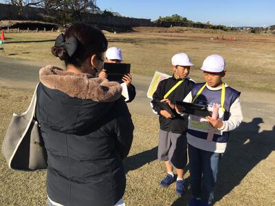 そして、学校へ戻るときに、市役所の方と一緒に開発地を見学して万田小学校校区を歩きました。「スマートシティ計画」が着々と進んでいることに驚いていました。
