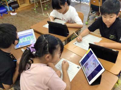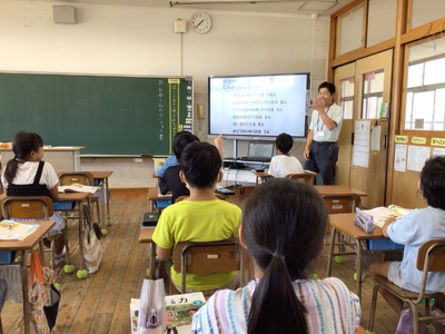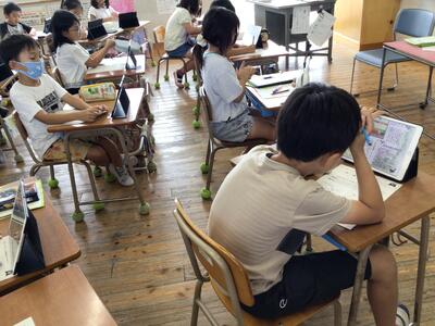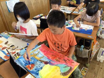 4年2組と5年1組で研究授業がありました。今回は「異学年交流」という形で、合同で図工の鑑賞の授業を行いました。