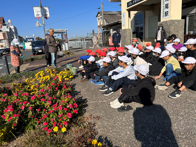 6年生が荒尾駅前の花壇の手入れを行いました。6年生は、5年生の頃から荒尾市のまちづくりに参加しています。今まで荒尾駅前の花壇の手入れを地域の方と一緒に行ってきました。今回は、6年生にとって最後の荒尾駅前の花壇の手入れです。