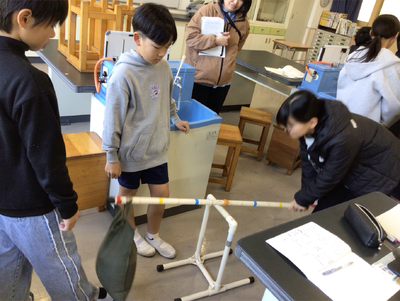 理科「てこのはたらきとしくみ」の研究授業がありました。重いもの(10㎏)を小さい力で持ち上げるには、どうすればいいのか実験を通して話し合いました。