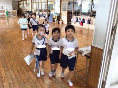 いつもより早い時間の登校でしたが、出発前から笑顔いっぱいの子供たち。楽しみにしている様子が伝わりました。