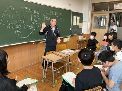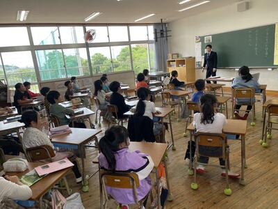 約2ヶ月、万田小学校で中学年を中心に算数の指導をしてくださった坪根先生とお別れの日がやってきました。お別れの日は、4年生がサプライズのお別れ会を開きました。