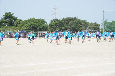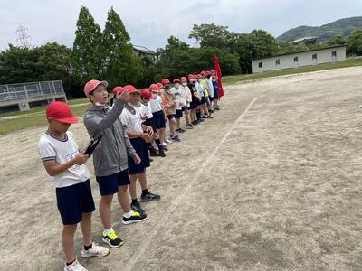 まずは出発式です。集団宿泊教室リーダーの児童が中心となって進めました。やる気十分です。